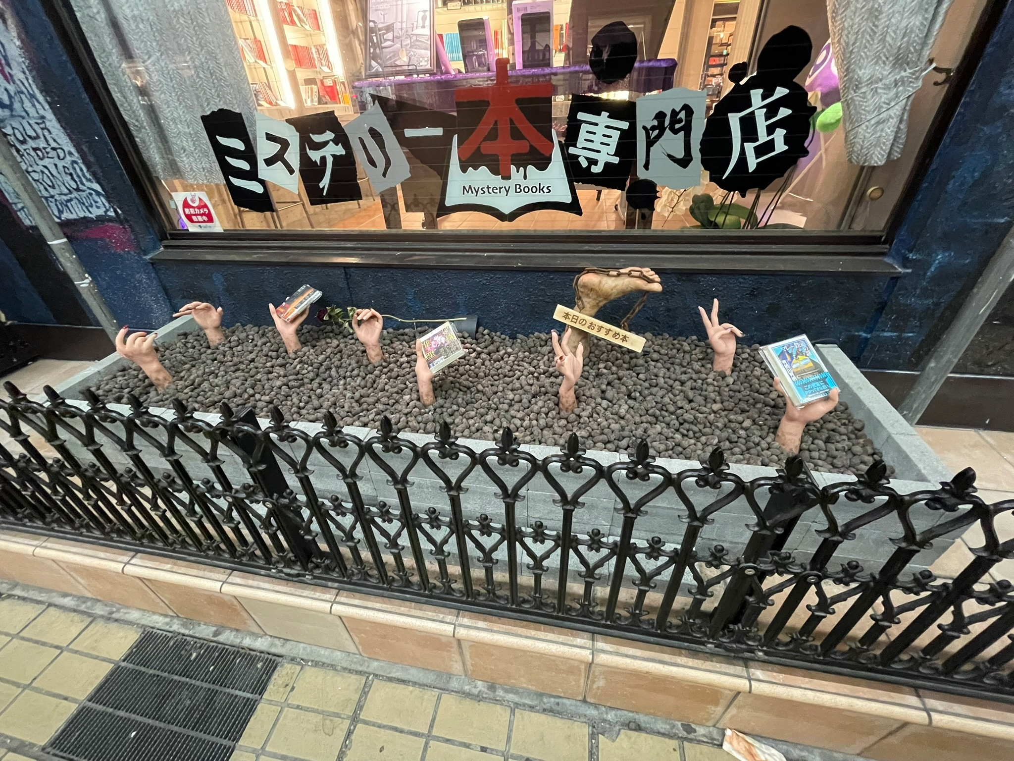 THAT BURRITO BTW IS THE BEST BURRITO IN NAGOYA! i mean i haven't really gotten mexican food many other places BUT STILL! it's from Sayulita right around the OSU area. seriously delicious burritos. the taiyaki is also from a little shop in OSU! it's soo good. literally 300 yen for a super fresh, hot taiyaki (with red beenz ofc). it's my favorite japanese dessert! thennnn a really cool exhibition-type book store that's just mystery books. they had this fun little spooky display outside. i believe it's called mystery books or something, it's also in OSU!